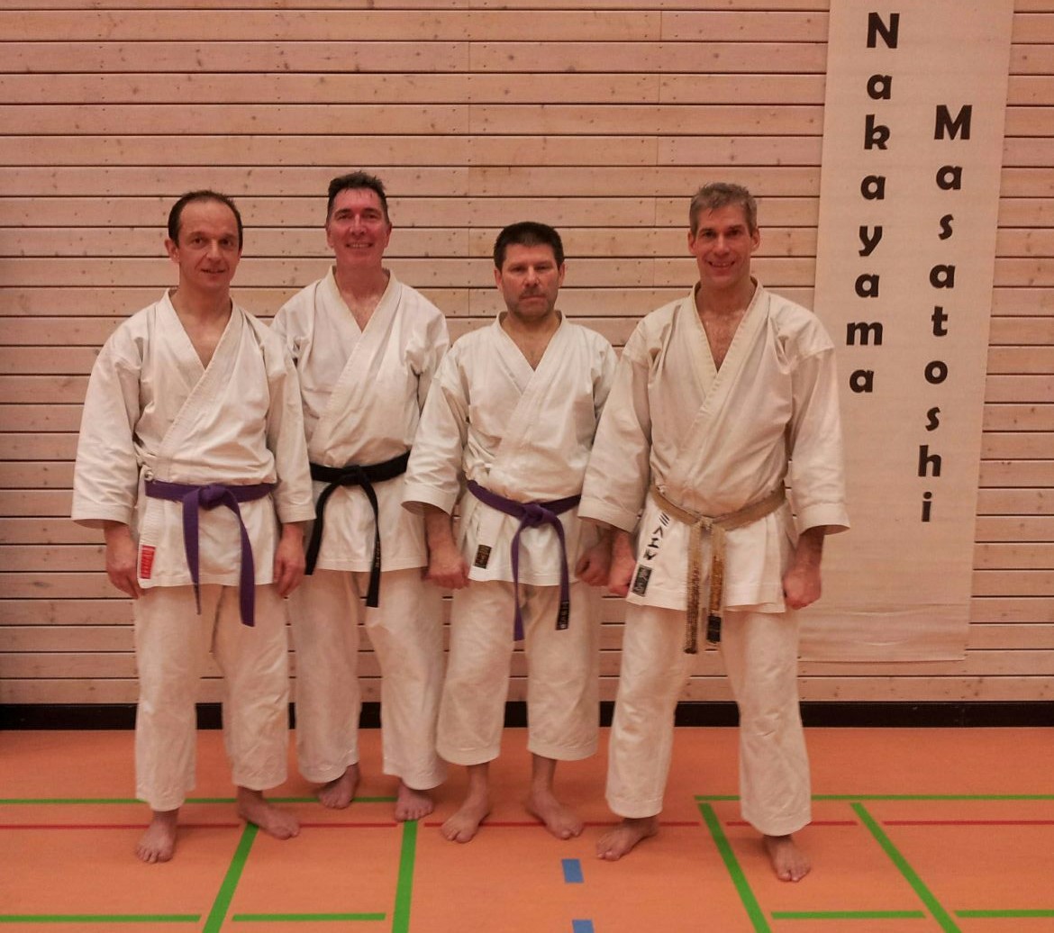 In der zweiten Trainingseinheit dann ließ Herr Ochi die Heian- sowie Sentei-Katas intensiv üben; auch hier waren freilich absolute Konzentration sowie eine gute Kondition verlangt. Abschließend folgten noch einmal drei runden Randori sowie knapp 200 Choku-Zukis aus Kiba-Dachi. Fazit: Für die teilnehmenden Mitglieder des SHOTOKAN-KARATE-DOJO WETZGAU – Alexander Diewold, Michael Niersberger, Matthias Purr und Markus Zorniger - hat sich die Fahrt nach Tamm auch heuer wieder gelohnt, um sich körperlich, aber auch mental auf das „Karate-Jahr 2015“ einzustimmen, aber auch um die Kameradschaft und Freundschaft mit anderen Karatekas und Dojos zu pflegen.